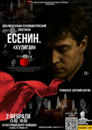 Молодежный театральный коллектив «OSNOVA” представляет спектакль ЕСЕНИН. «Хулиган» - это попытка понять «что значит – быть гениальным поэтом?»