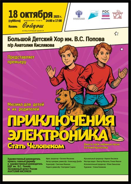 В 1980 году советское телевидение начало показ фильма «Приключения Электроника» – фильма, который подарил юным зрителям влюбленность в робота с позитронным мозгом, песню «Крылатые качели» и фразу про кнопку. Именно эта песня , как и ещё более десятка детских хитов великого композитора Евгения Крылатова стали , и остаются «визитной карточкой» знаменитого на всю страну Большого Детского Хора Центрального телевидения и Всесоюзного радио, ныне носящего имя своего основателя – Виктора Сергеевича Попова. И именно «Крылатые качели» стали вдохновением к созданию мюзикла про электронного мальчика и его приключения, для нынешнего руководителя хора – Анатолия Кислякова.