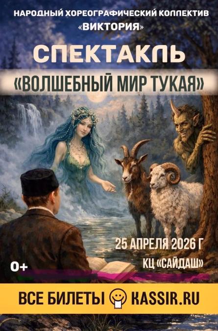 Танцевальный спектакль «Волшебный мир Тукая» в исполнении Народного хореографического коллектива «Виктория» приглашает зрителей в увлекательное путешествие по страницам поэзии и сказок великого татарского поэта. Постановка раскрывает богатство национальной культуры через выразительный язык танца, соединяя традиционные мотивы с современными хореографическими решениями. Красочные костюмы, авторская хореография и проникновенное исполнение артистов наполняют сцену ощущением подлинного волшебства. Каждый номер словно ожившая история, наполненная добротой, мудростью и красотой. Спектакль подарит зрителям яркие впечатления, вдохновение и позволит прикоснуться к миру искусства, где танец становится языком души.